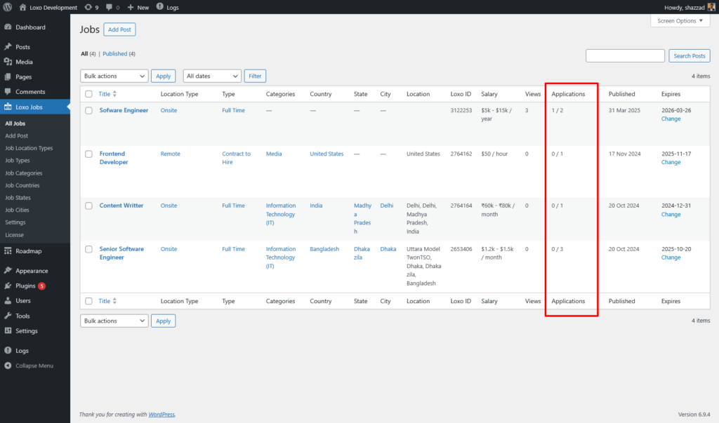 - Onsite — Applications submitted through your website’s job application form. Counted locally by the plugin.
